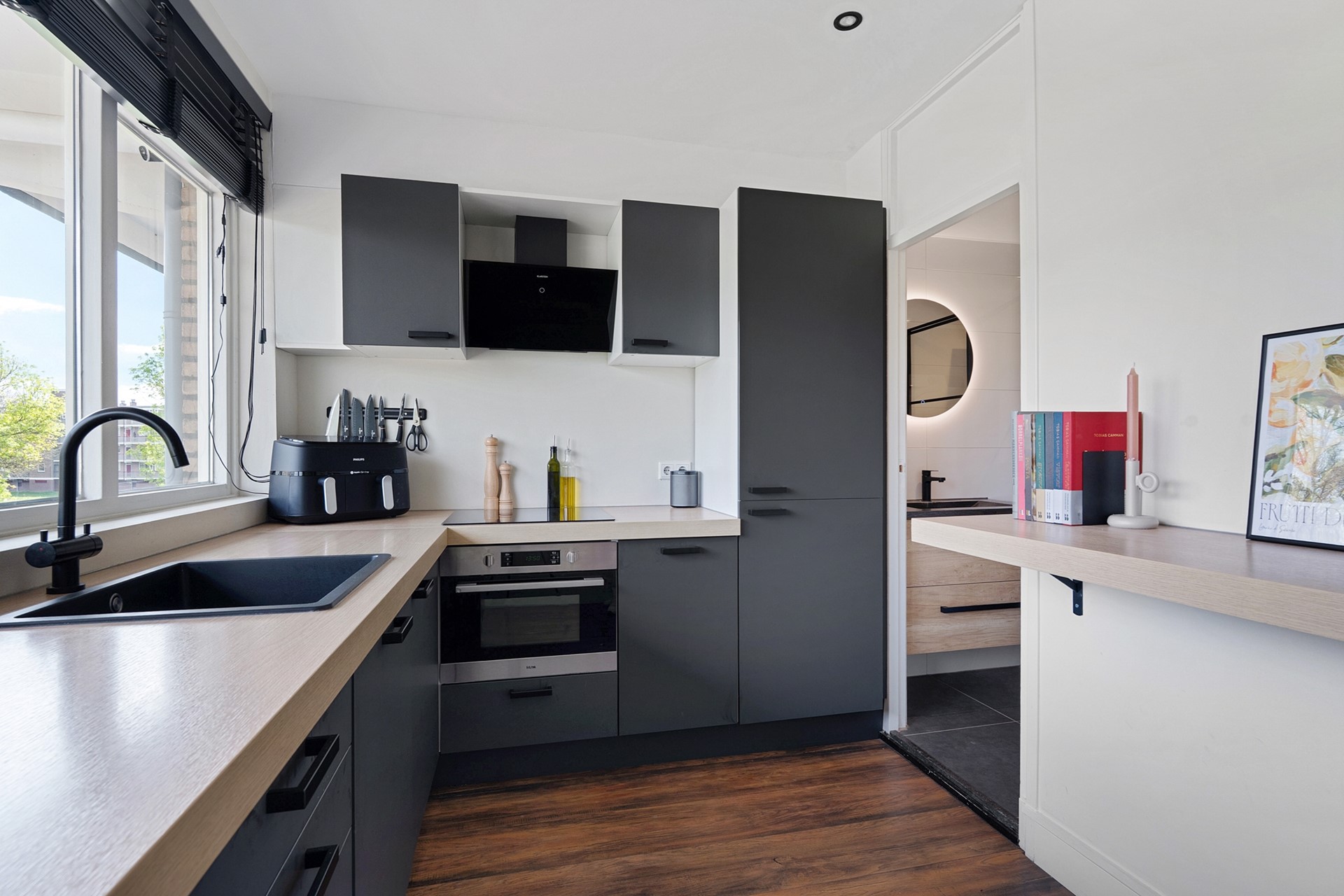 Houd je van koken? Dan is de keuken absoluut een fijne plek voor je culinaire hobby’s. Je vindt hier moderne inbouwapparatuur en veel opbergruimte. In een van de keukenkasten is de cv-ketel netjes weggewerkt. Alles klopt, alles werkt.