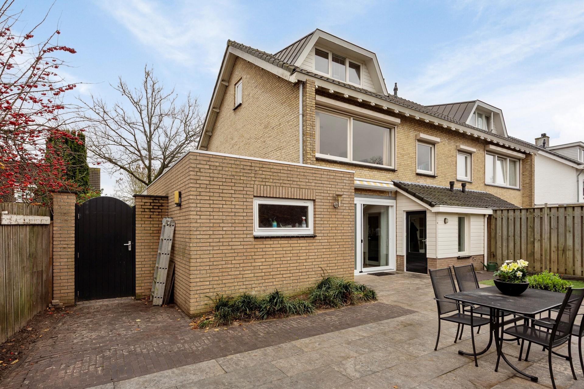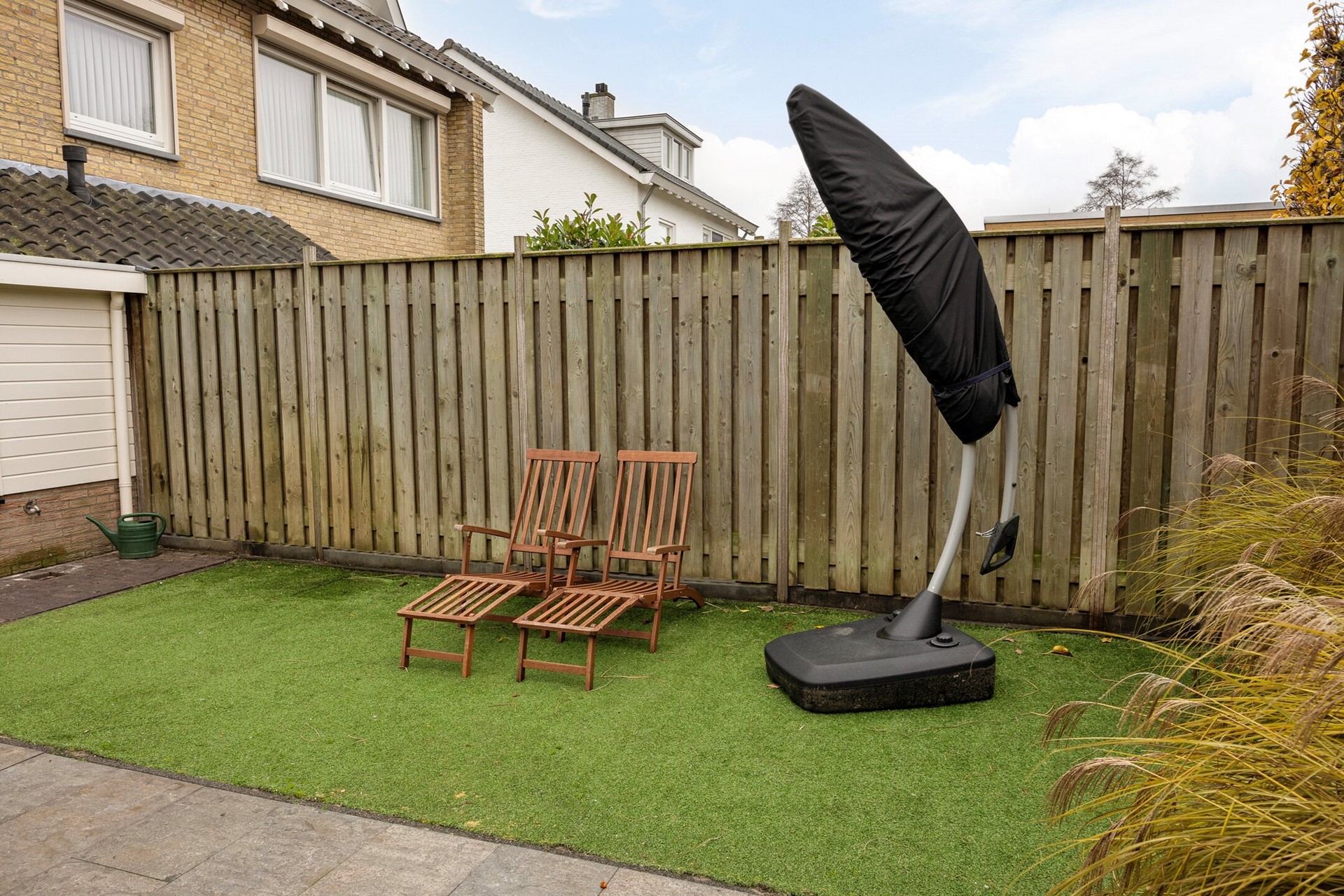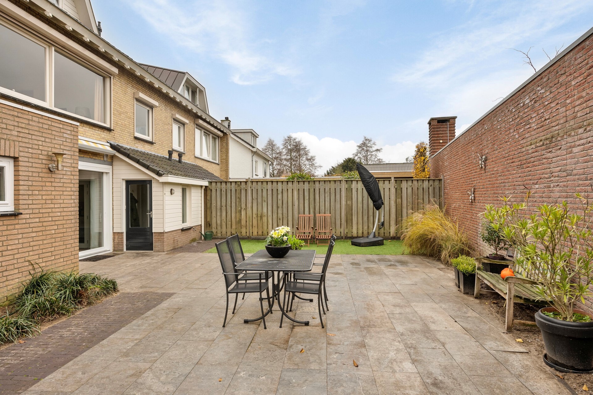 Buitenmensen zitten hier helemaal op hun plek. De achtertuin is fraai aangelegd en biedt veel privacy. Er is ruimte genoeg voor een grote eettafel, een gezellige loungebank én een speelhoek. Zie je jezelf al zitten, met een goed boek onder de parasol terwijl de kinderen zich vermaken? Of juist barbecueën met vrienden tot de zon ondergaat? Met zulke buitenmogelijkheden wordt elke zomer vanzelf een feestje.
